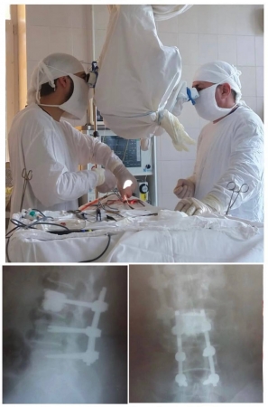 Проведено оперативное вмешательство: «Декомпрессивная ламинэктомия (резекция структур, которые приводят к сдавлению нервных корешков и конского хвоста (cauda equina) задним доступом., а именно, остистого отростка дуг позвонков, жёлтой связки, межпозвонковых суставов). Стабилизация путём установки ТПС. Вертебропластика гемангиомы тела L3 позвонка».