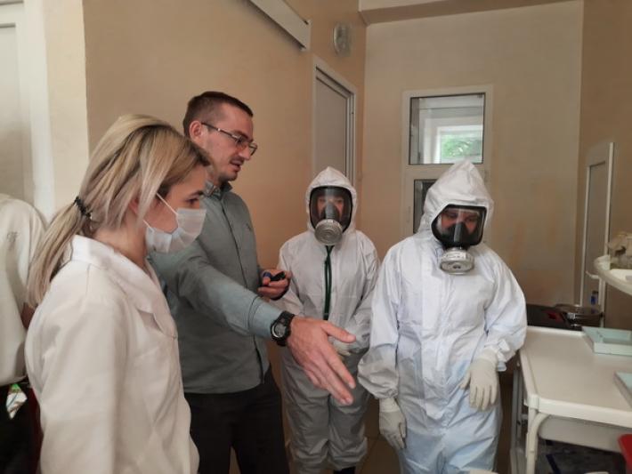 Второй этап – оперативный – прошёл на базе Центра по борьбе со СПИД и ИЗ. В его ходе были отработаны действия при приёме пациента, определены потоки «грязного» и «чистого» материала, входа медицинского персонала в «грязную зону» и выхода оттуда.