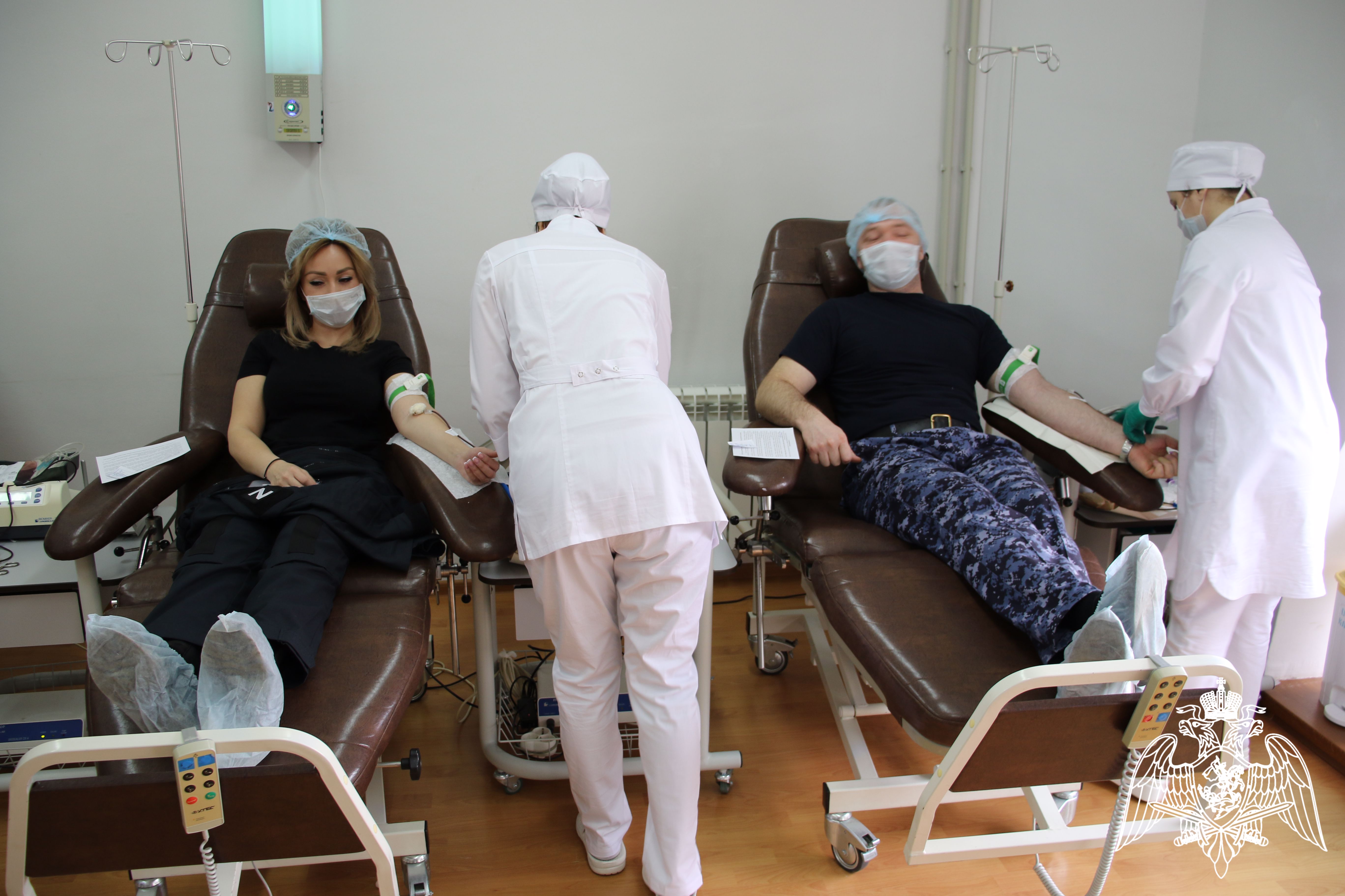 Процедуру донации на республиканской станции переливания крови росгвардейцы прошли после тщательного медосмотра.